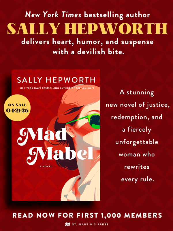 Told with Sally Hepworth’s twists, humor, charm, and heart, MAD MABEL is novel that weaves past and present together–through the power of justice and redemption, and all the way to its stunning conclusion.